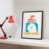 ポップで可愛らしい「シモン」のデザインをアイボリー系の用紙にプリントし、優しい雰囲気のポスターにしました。